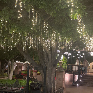 It certainly does feel increasingly like Christmas here, in spite of the warm weather and the lack of standard Christmas carols playing in stores and on the local radio. But everywhere, the holiday decorations are out, particularly in the jardin, the central park where thousands of lights hang like flickering icicles from overhead wires and people gather to attend music events, plays and shop, carriyng hordes of piñatas and the biggest bags of candies with which to fill them that I’ve ever heard of. During the day and at night, normally slow-moving traffic creeps to almost a standstill as locals and tourists get ready. But there is not the unpleasant impatience of last-minute shoppers to face. Store owners take the time to smile and wish us Feliz Navidades. They are happy for our business and brief conversations in Spanish over the counter. The message is that every customer is important, and those in line can wait. And they do, happily. I’ve distributed all the gifts we’ve bought and are ready for what comes next. Our taxi driver told us that his kids are really excited about shooting off the cuevetes, the fireworks that make loud bangs and sound like gunfire and go off at all hours of the day or night with the least excuse to celebrate. It’s one reason why we don’t live in el Centro where the noise from the fireworks plus the church bells could drive a person bonkers. Mexico in general is mad for fireworks, but San Miguel is the reigning queen. I’m waiting to see if Holy Christmas Day is an exception to the blasts, but from what our cab driver said, it doesn’t sound like it will be.